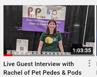 Interviews with Rachel From Pet Pedes and Pods Aquarimax Pets Live Guest Interview with Rachel of Pet Pedes and PodsAmphibiCast Episode 37. “The Isopod Episode” with Rachel Schindler of Pet Pedes and PodsIsobuddies Youtube Channel Shipping IsopodsThe Supreme Gecko Channel Isopod Expert Panel Discussion – Your Questions Answered