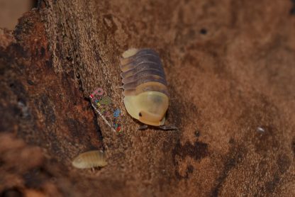 Cubaris “Rubber Ducky” are pretty much the cutest isopods ever to exist. These are some of the most popular and sought after isopods in the hobby. A must have for any collection! These isopods are shy and like to burrow, but simply flip over a piece of bark to see that cute little ducky face looking up at you.